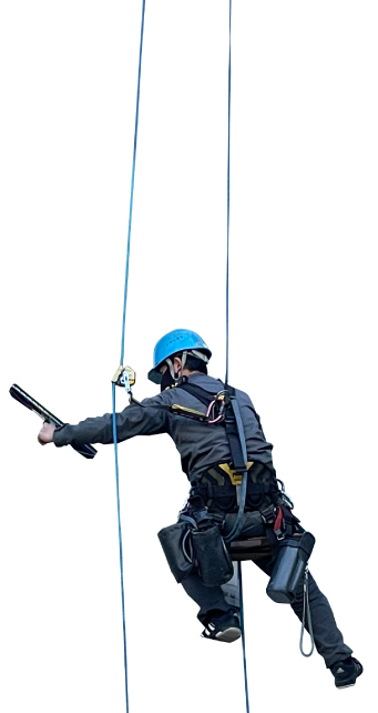 私たちスタッフが行う「ブランコ作業」は、ゴンドラ・組み立て足場と比べ作業効率が良く、